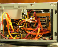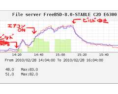 ファイルサーバ機が組み上がったときに「エコワット」という、消費電力と電気料金をおおまかに表示することができる機械を試しにコンセントとの間に挟んでおいた。